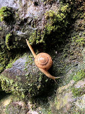 過ごしやすい季節となりました。本日の雨で、境内の石垣のあちこちに蝸牛が出ていました。暑い夏を生き延びた猛者たちと思います。