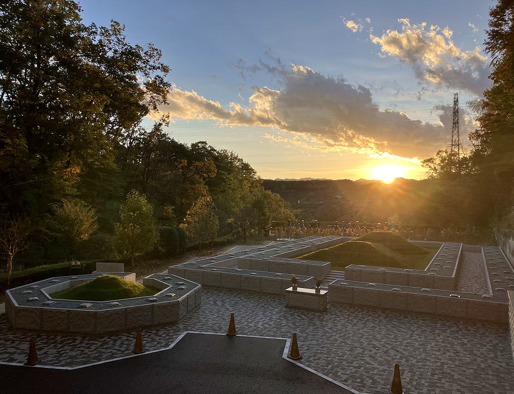 稲足神社霊園の見晴らしのよい墓域に、全長26m・横幅18mの前方後円墳と八角墳をそなえる古墳型樹木葬(合葬墓)「ときは」があります。